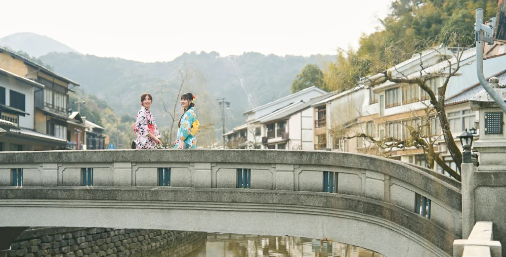 この時期、桜と柳の枝が川面に映り、淡い光の中で湯気とともに旅情が静かに高まります。宿泊中、浴衣でそぞろ歩くことで、時間がゆっくり流れる感覚を実感できます。